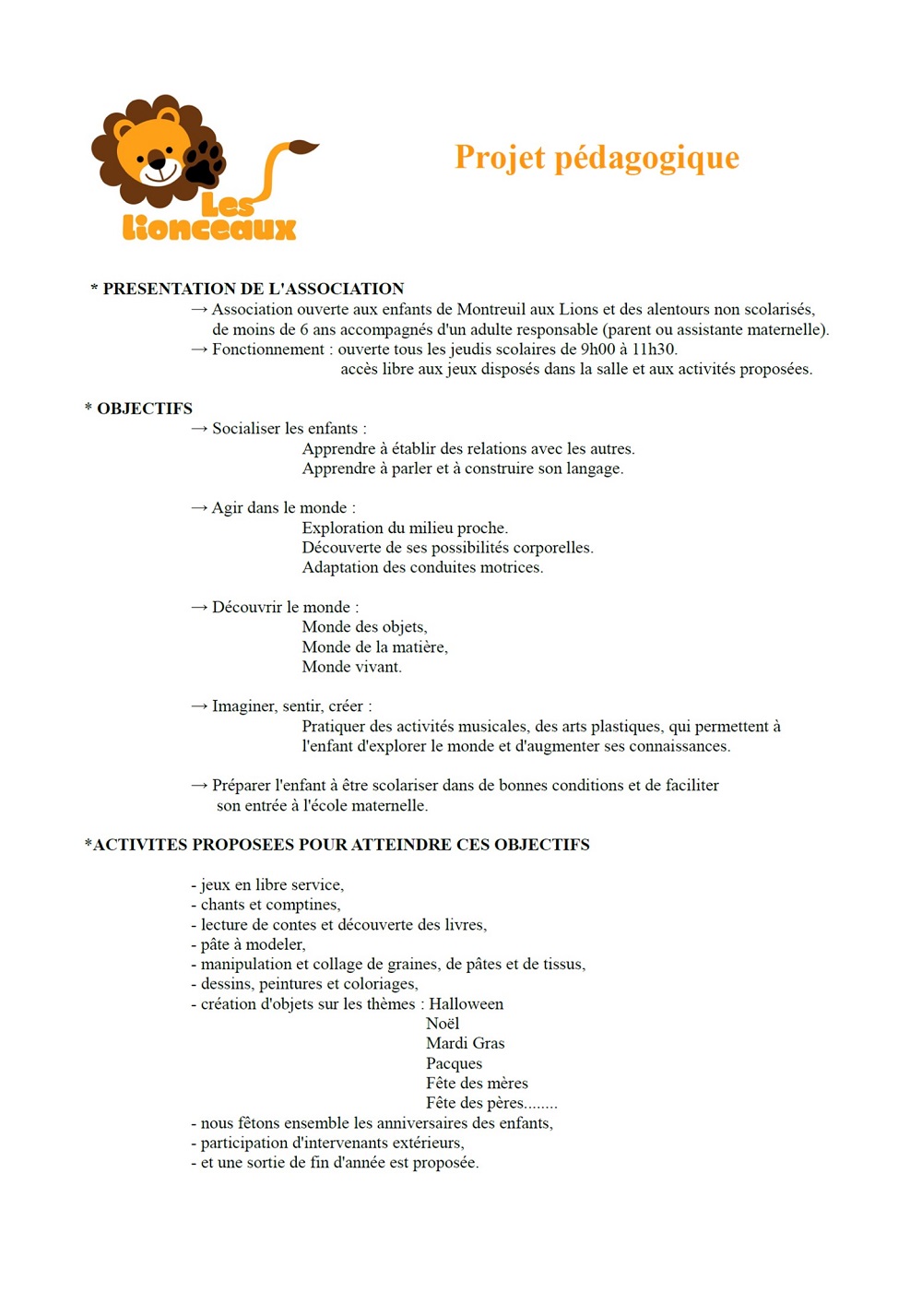 Accueil > Associations : LES LIONCEAUX - Halte-jeux